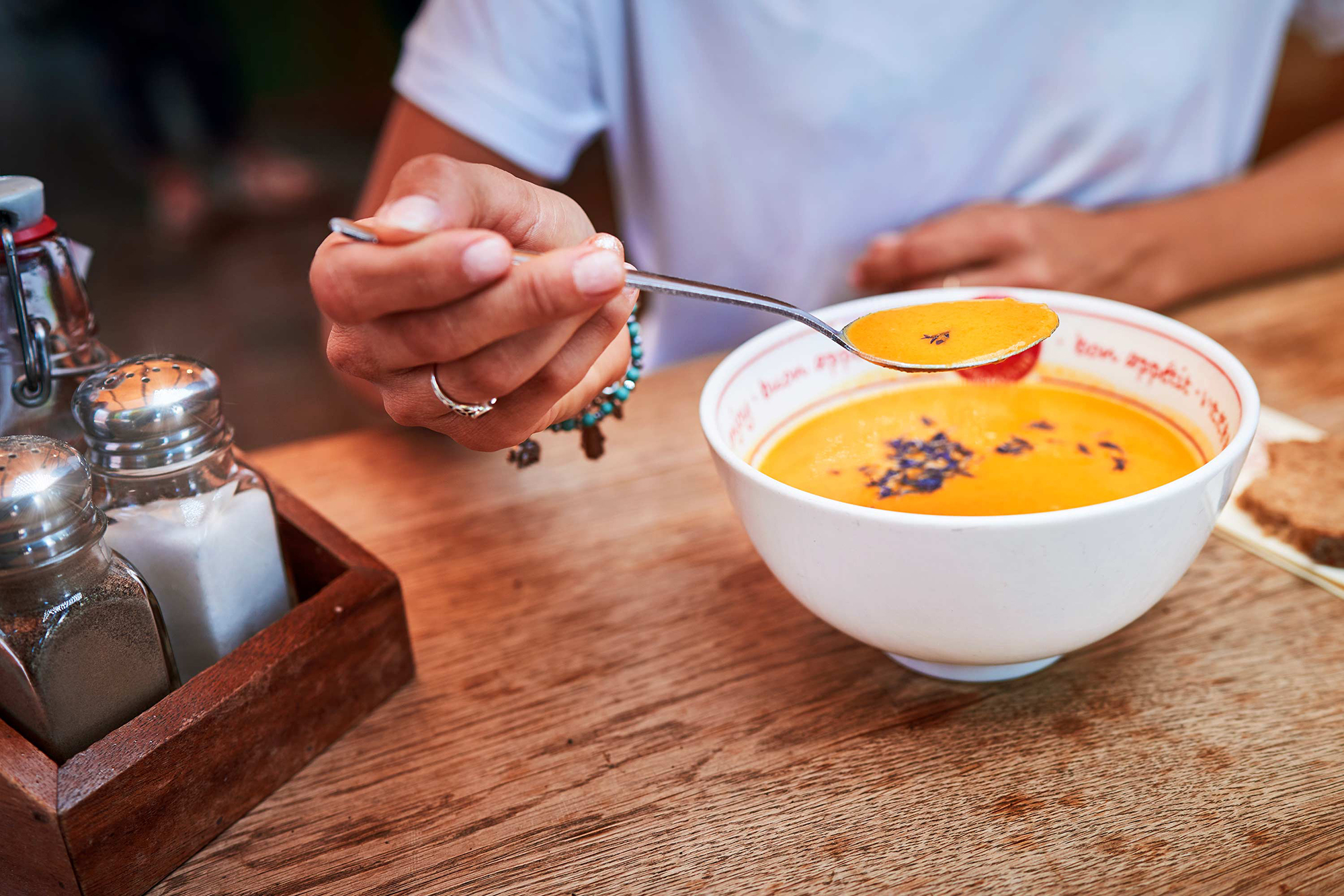 Deshalb achten wir auf frische, gute Zutaten aus der Region und eine schonende Zubereitung. Oder kurz gesagt: Bei uns kommen 100% Geschmack und 0% Zusatzstoffe auf den Tisch. Und das schmeckt man. Denn letztlich ist es der Geschmack unserer handgemachten Suppen, der unsere Kunden glücklich macht. Bei uns genießt man einfach feine Suppe.